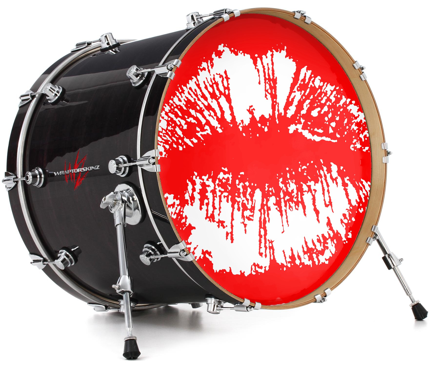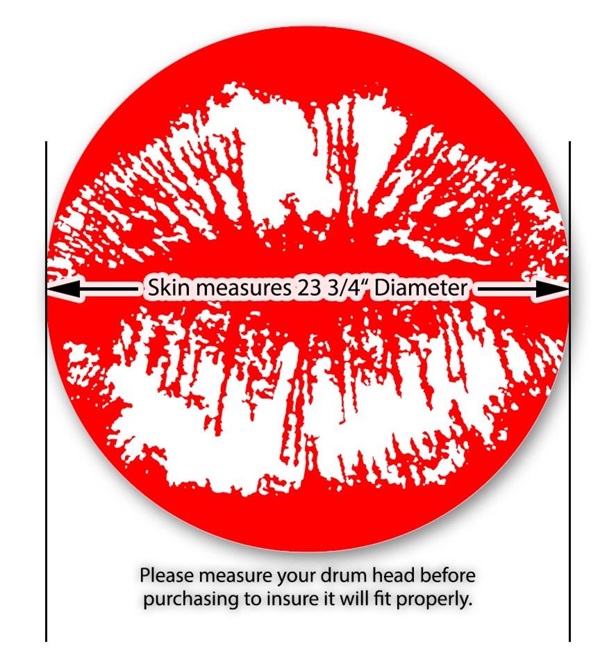 Decal Skin works with most 24" Bass Kick Drum Heads Big Kiss White on Red - DRUM HEAD NOT INCLUDED