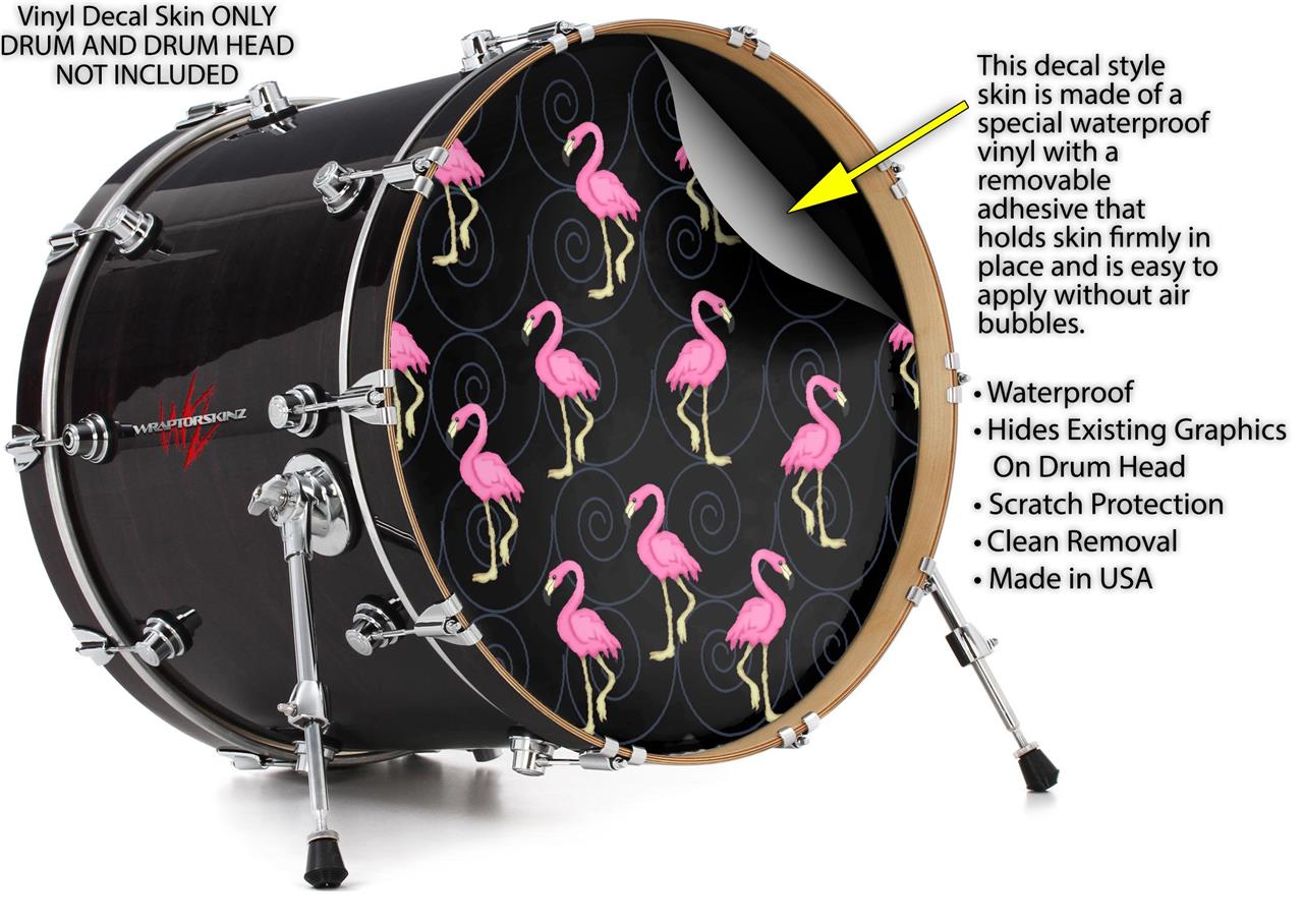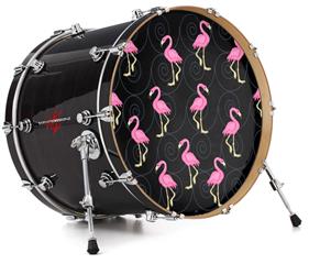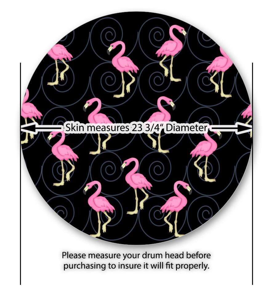 Decal Skin works with most 24" Bass Kick Drum Heads Flamingos on Black - DRUM HEAD NOT INCLUDED
