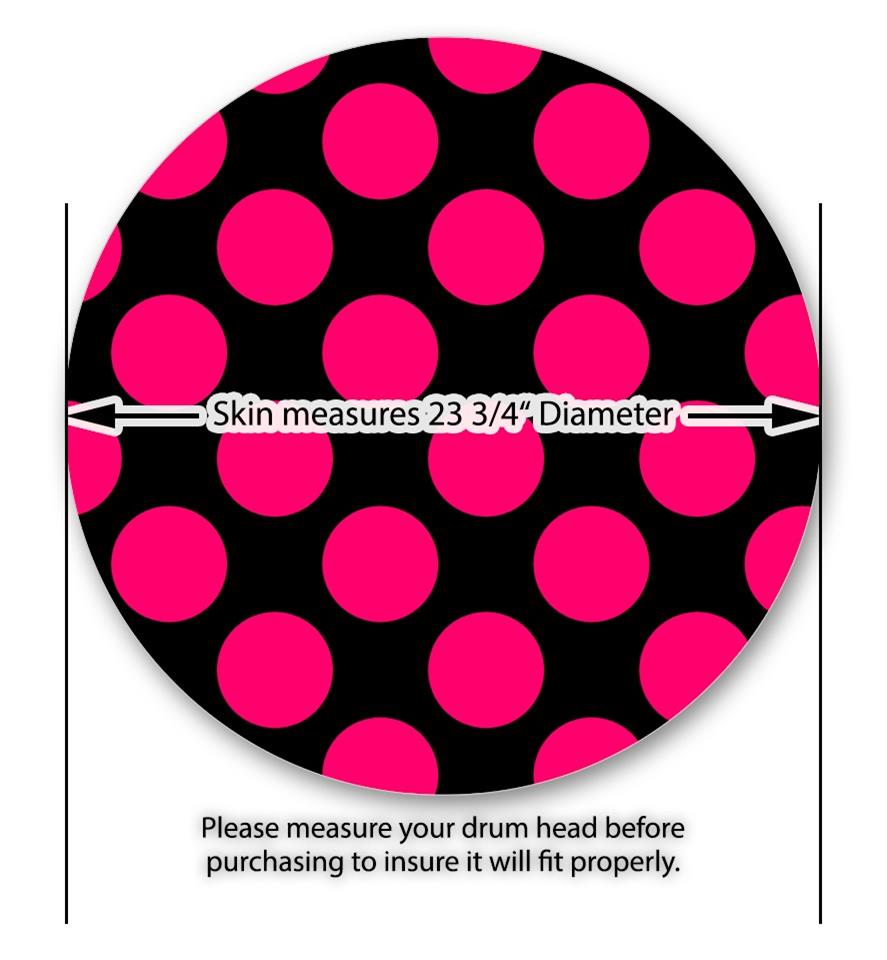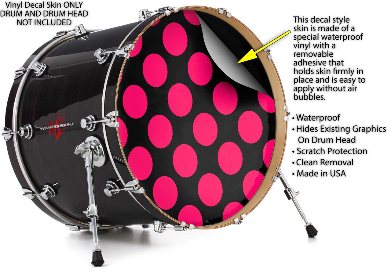Decal Skin works with most 24" Bass Kick Drum Heads Kearas Polka Dots Pink On Black - DRUM HEAD NOT INCLUDED
