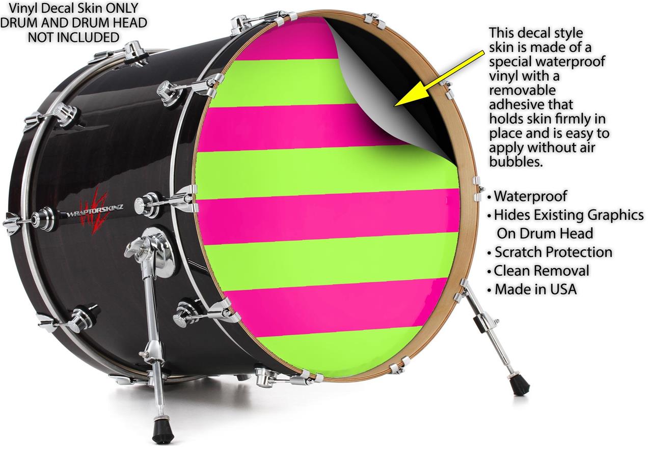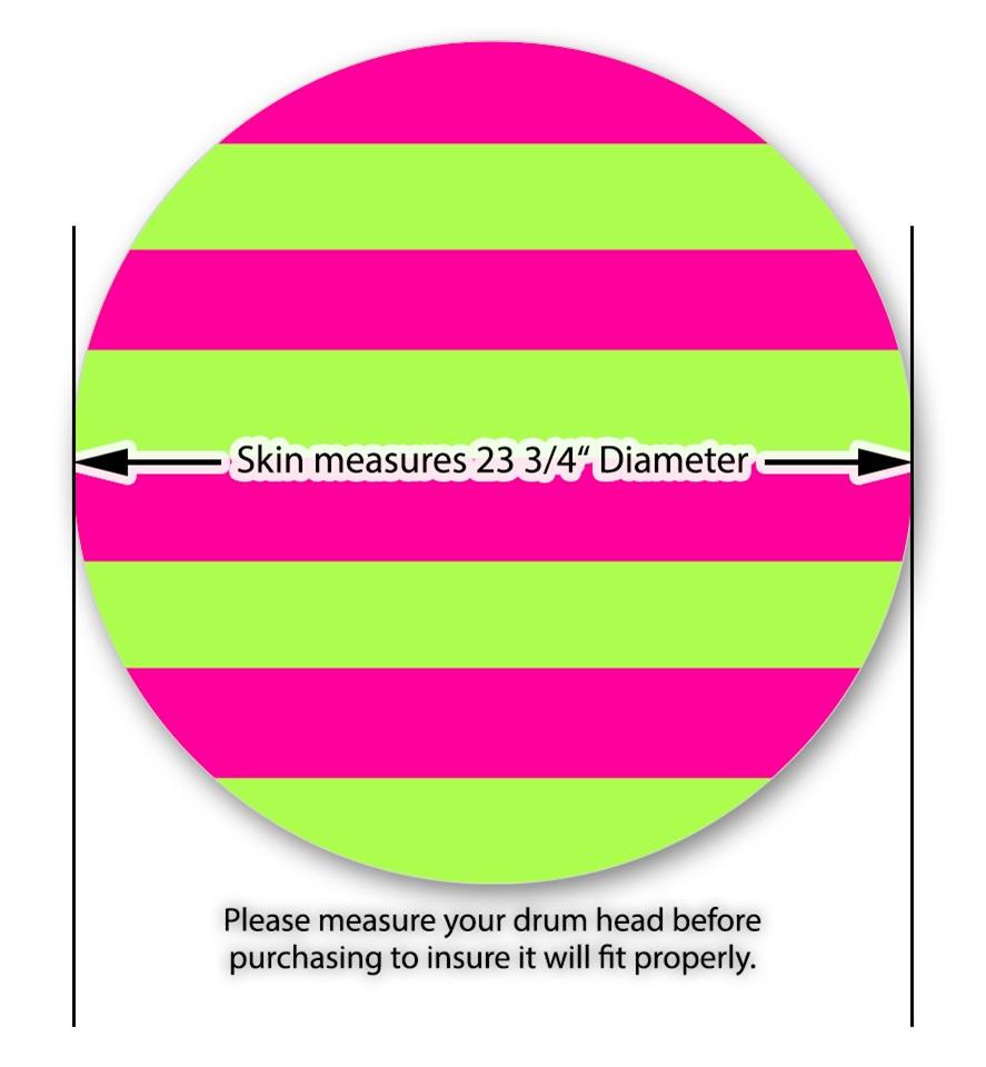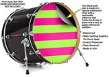 Decal Skin works with most 24" Bass Kick Drum Heads Psycho Stripes Neon Green and Hot Pink - DRUM HEAD NOT INCLUDED