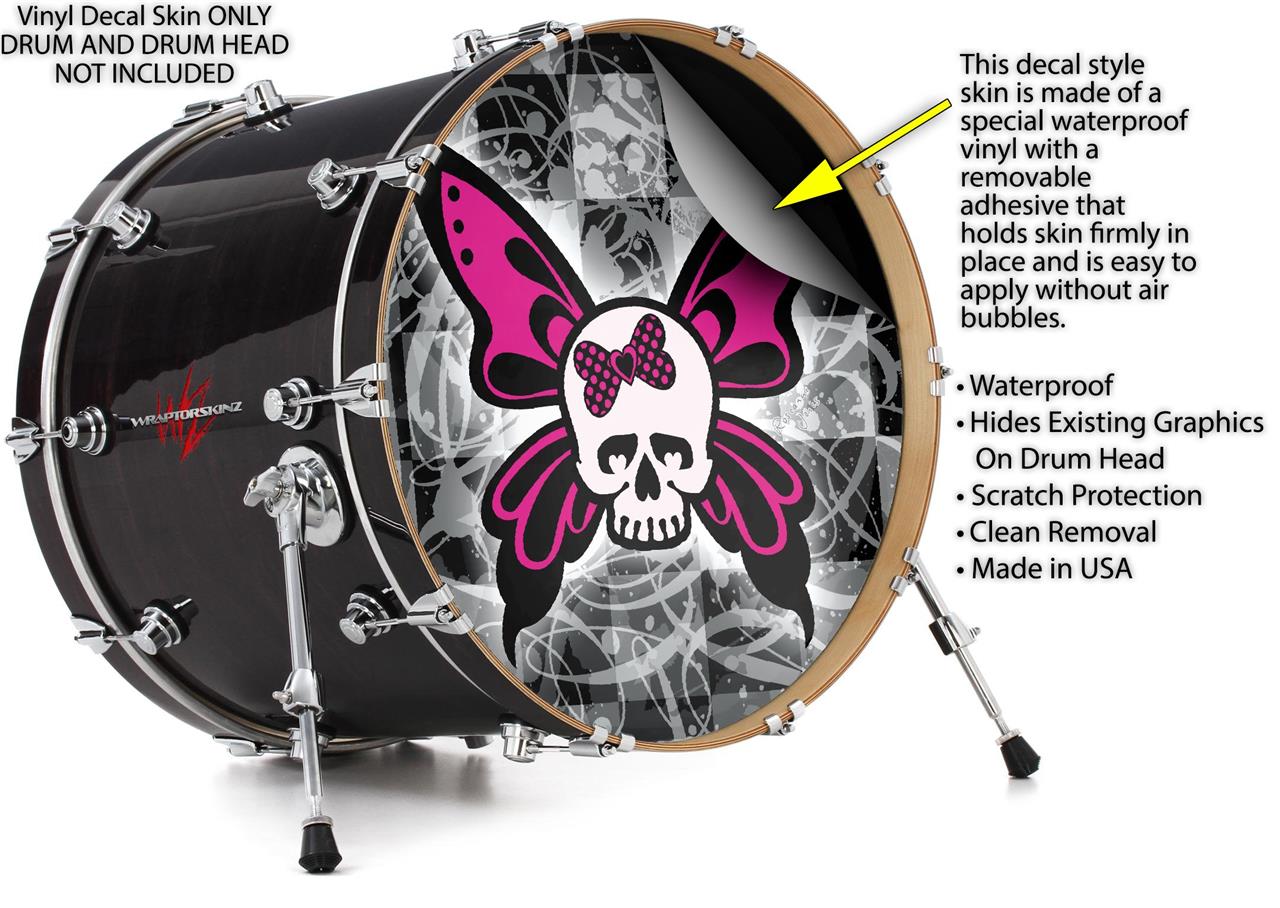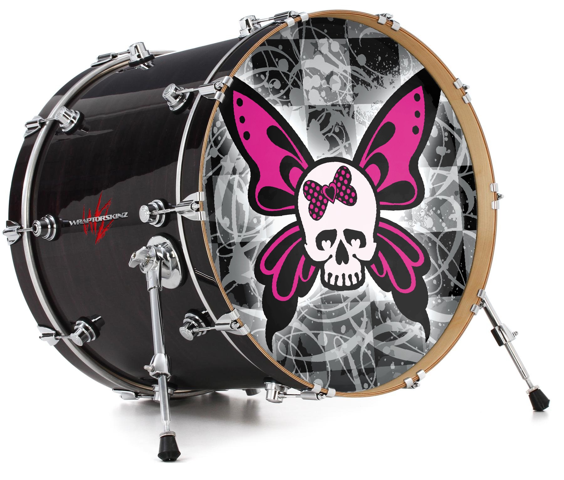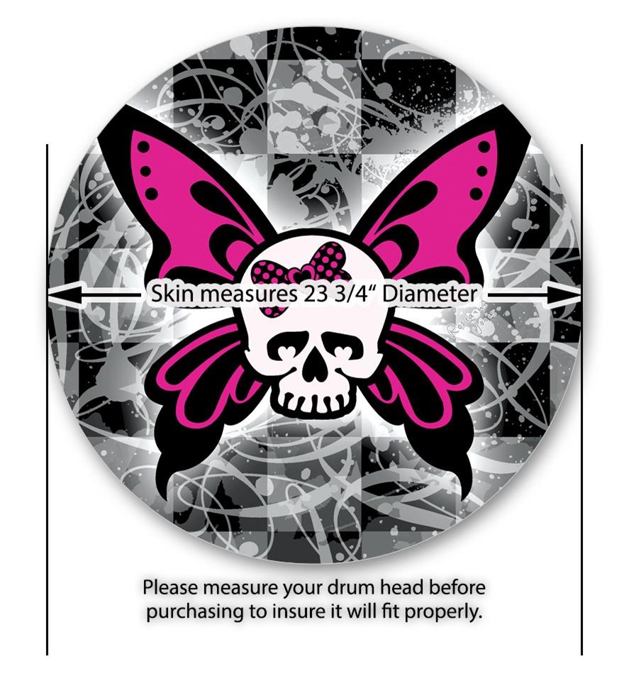 Decal Skin works with most 24" Bass Kick Drum Heads Skull Butterfly - DRUM HEAD NOT INCLUDED