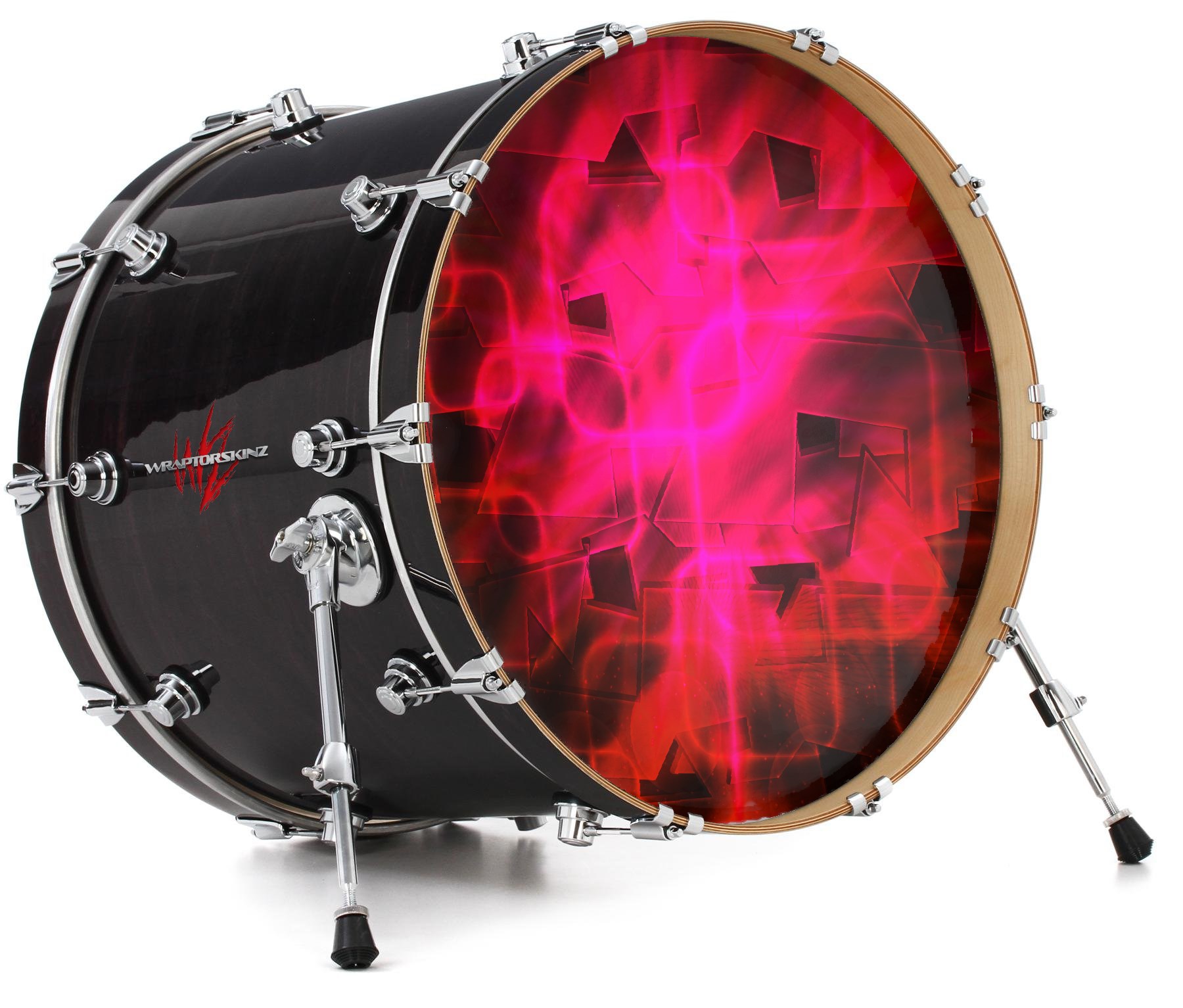 Decal Skin works with most 24" Bass Kick Drum Heads Cubic Shards Red - DRUM HEAD NOT INCLUDED