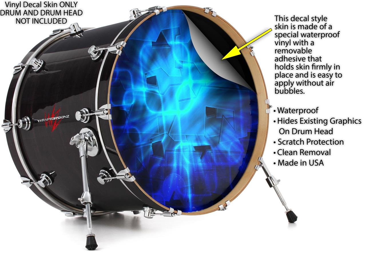 Decal Skin works with most 24" Bass Kick Drum Heads Cubic Shards Blue - DRUM HEAD NOT INCLUDED