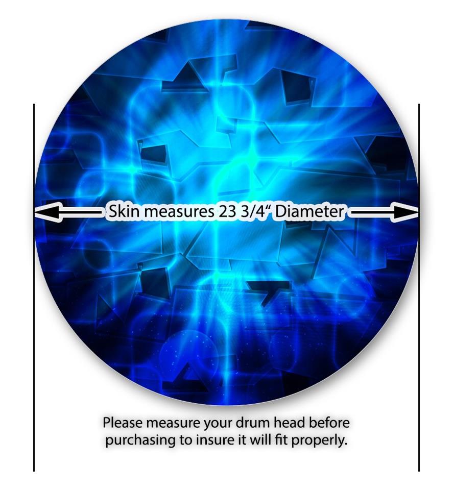 This design also available in other sizes. WraptorSkinz® skin wraps compatible with most kick drum heads. Printed using superb photo quality designs and vibrant colors printed with special fade resistant inks that last even in direct sun for years. WraptorSkinz are a composite three layer commercial grade materials vinyl. The bottom layer is a air release, grey block out removable adhesive that hides existing graphics on the drum head and is easily applied without air bubbles. The middle layer is a flexible vinyl printed with UV protected, fade resistant inks that deliver superb photo quality designs in vibrant colors. Finally, we bond a professional grade laminate over the entire skin adding a glossy protective finish.