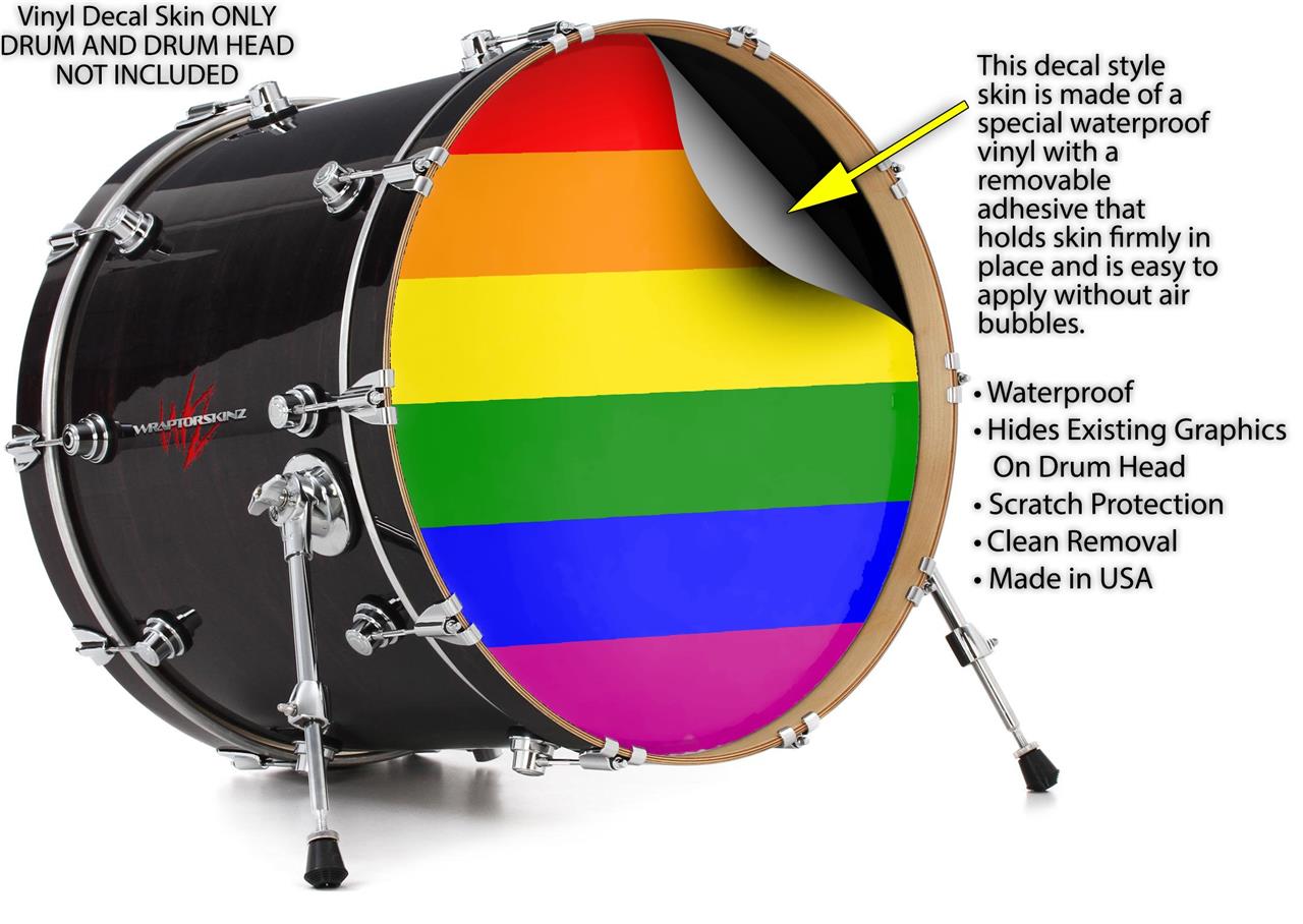 Decal Skin works with most 26" Bass Kick Drum Heads Rainbow Stripes - DRUM HEAD NOT INCLUDED