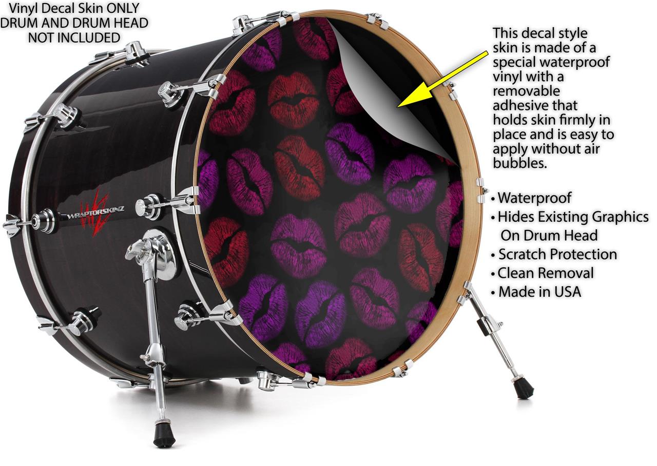Decal Skin works with most 26" Bass Kick Drum Heads Red Pink And Black Lips - DRUM HEAD NOT INCLUDED