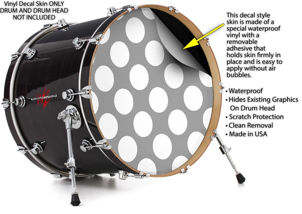 Decal Skin works with most 26" Bass Kick Drum Heads Kearas Polka Dots Whtie On Gray - DRUM HEAD NOT INCLUDED