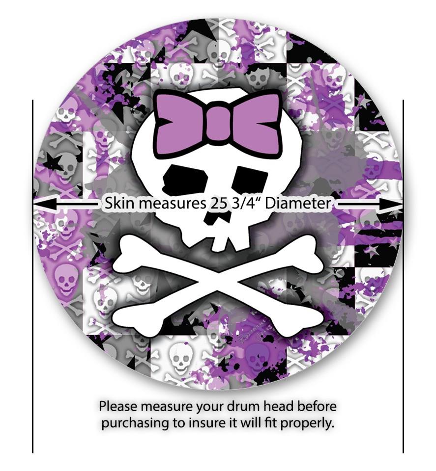 Decal Skin works with most 26" Bass Kick Drum Heads Princess Skull Purple - DRUM HEAD NOT INCLUDED