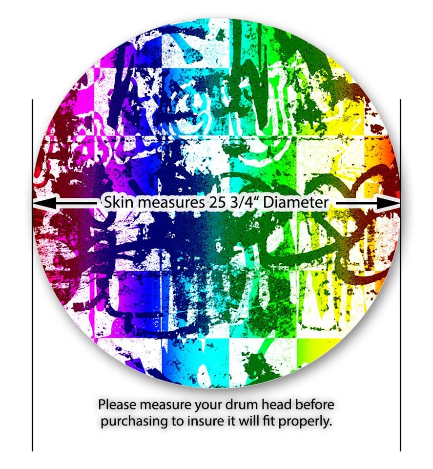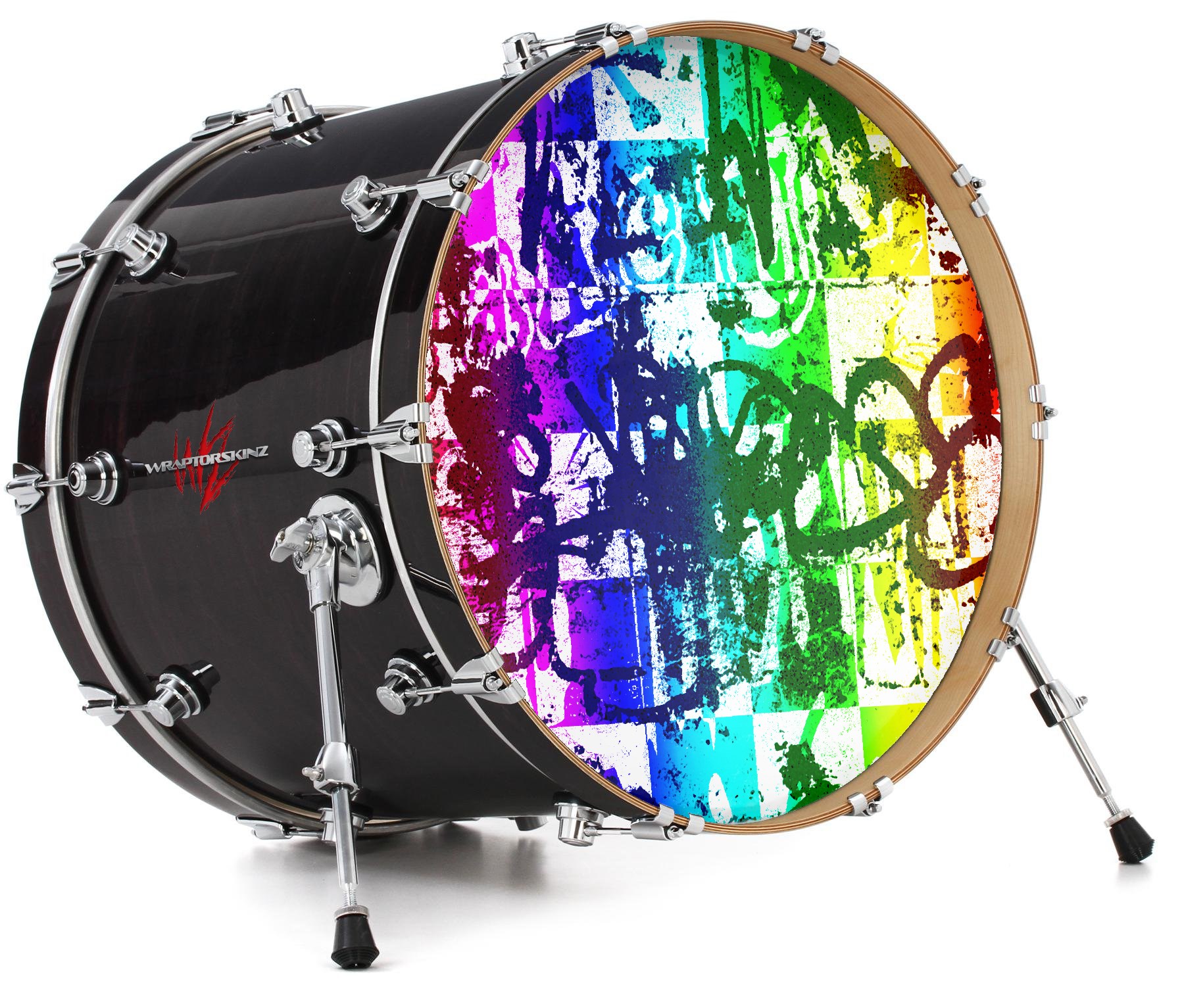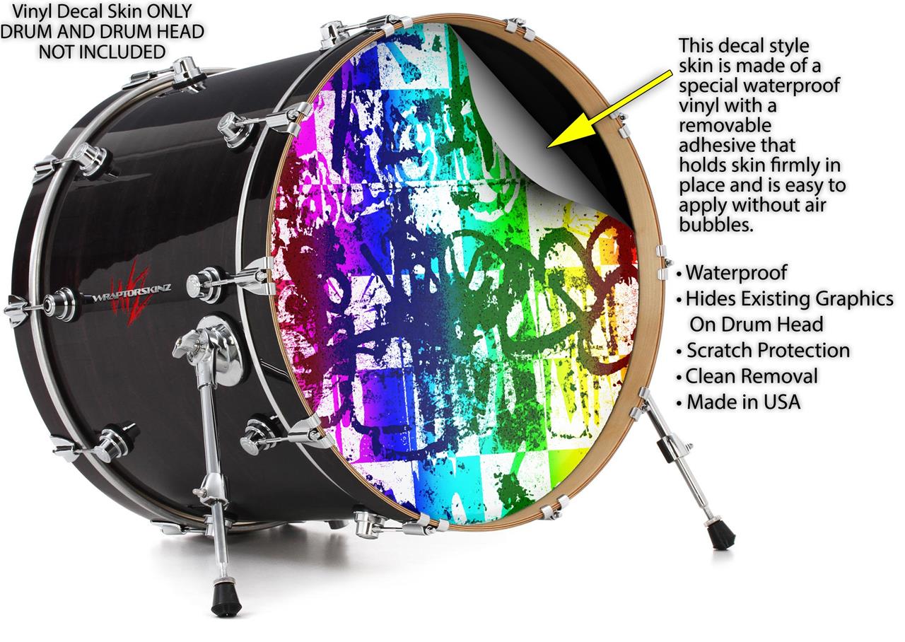 Decal Skin works with most 26" Bass Kick Drum Heads Rainbow Graffiti - DRUM HEAD NOT INCLUDED