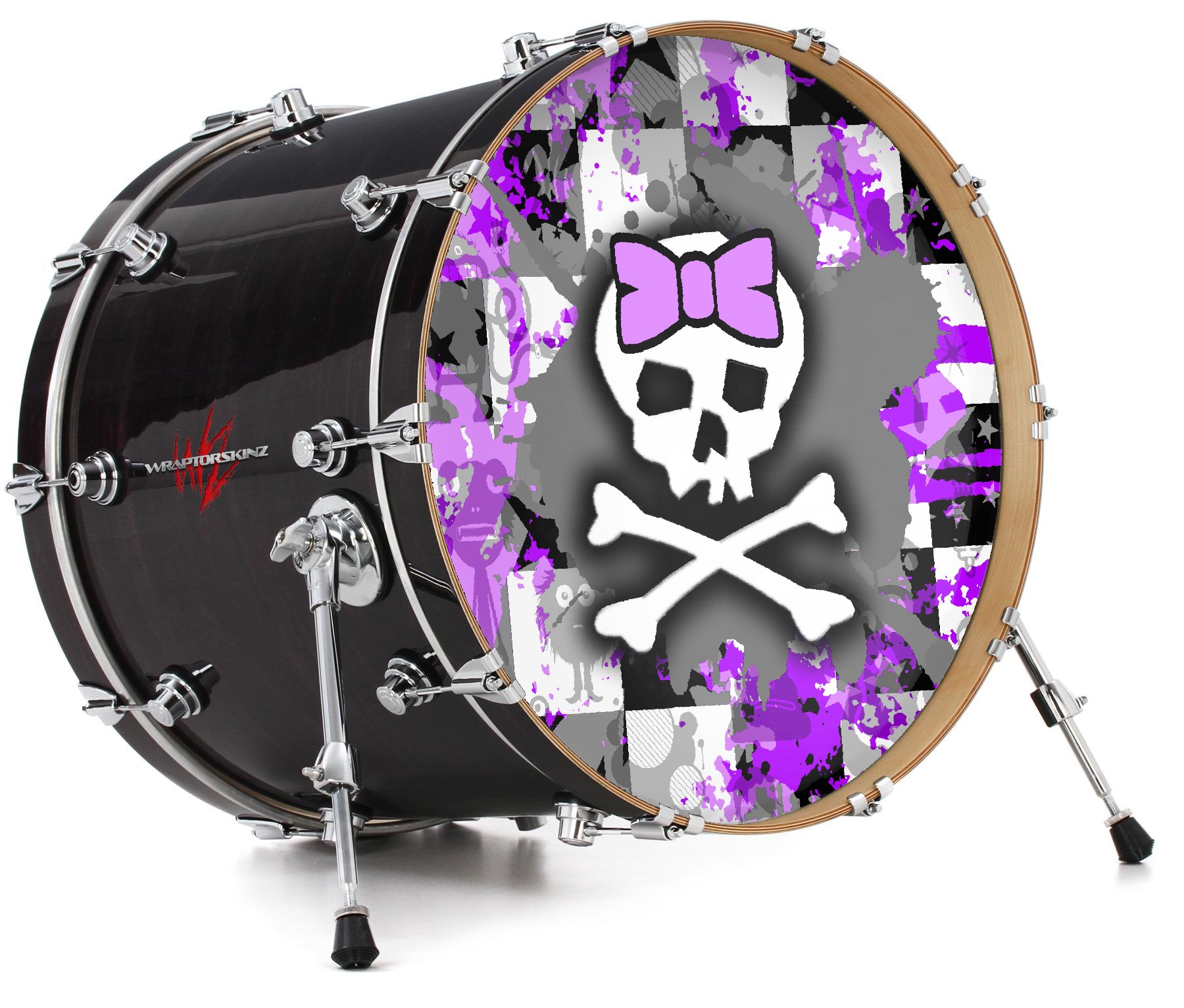 Decal Skin works with most 26" Bass Kick Drum Heads Purple Princess Skull - DRUM HEAD NOT INCLUDED