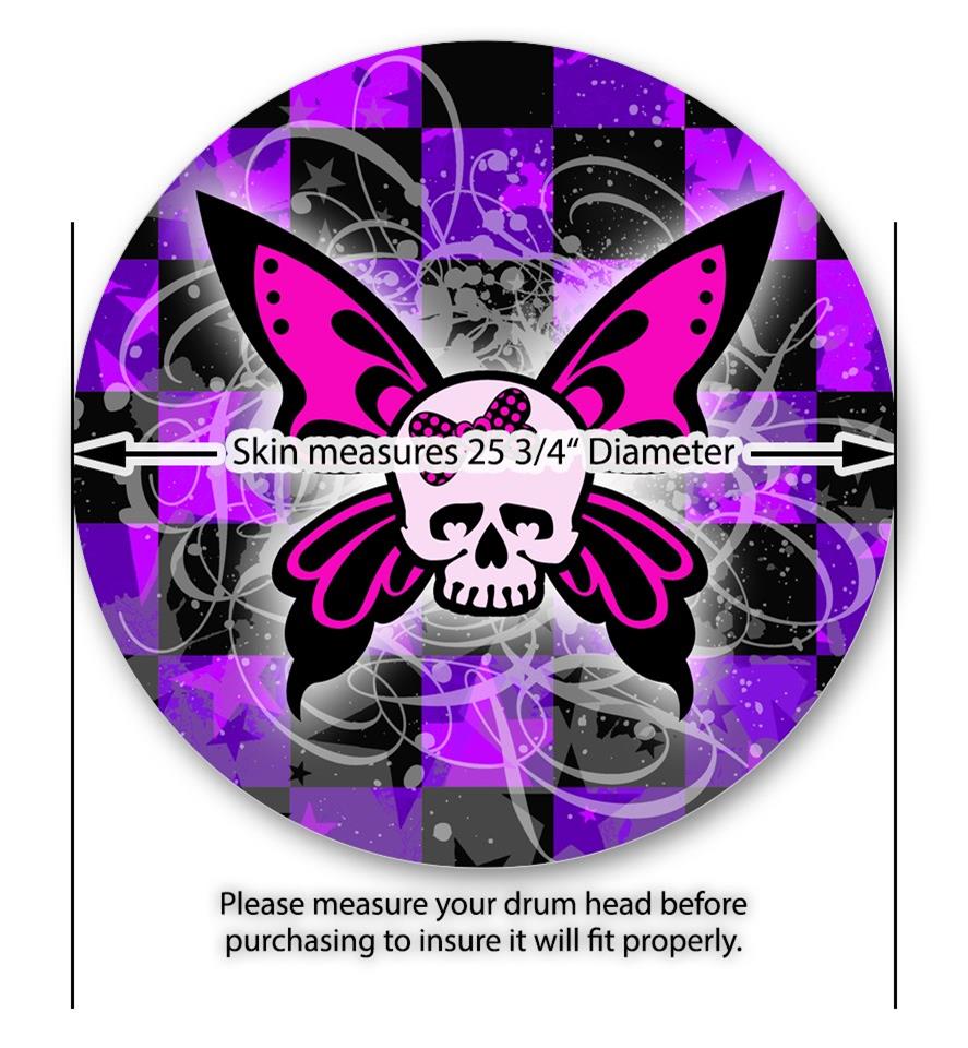 Decal Skin works with most 26" Bass Kick Drum Heads Butterfly Skull - DRUM HEAD NOT INCLUDED