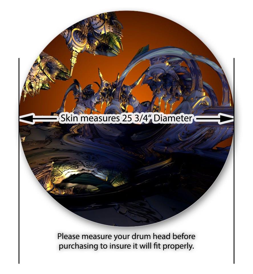 This design also available in other sizes. WraptorSkinz® skin wraps compatible with most kick drum heads. Printed using superb photo quality designs and vibrant colors printed with special fade resistant inks that last even in direct sun for years. WraptorSkinz are a composite three layer commercial grade materials vinyl. The bottom layer is a air release, grey block out removable adhesive that hides existing graphics on the drum head and is easily applied without air bubbles. The middle layer is a flexible vinyl printed with UV protected, fade resistant inks that deliver superb photo quality designs in vibrant colors. Finally, we bond a professional grade laminate over the entire skin adding a glossy protective finish.
