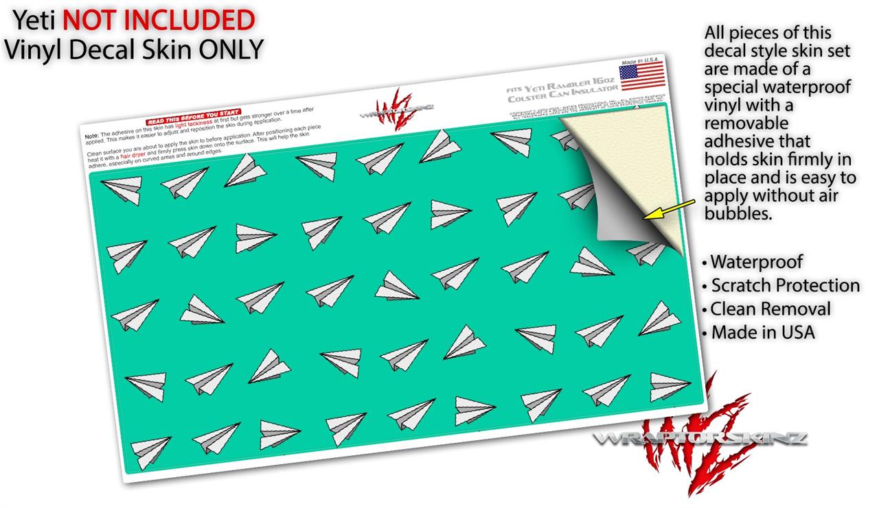 WraptorSkinz Skin Decal Wrap compatible with Yeti 16oz Tall Colster Can Cooler Insulator Paper Planes Turquoise (COOLER NOT INCLUDED)