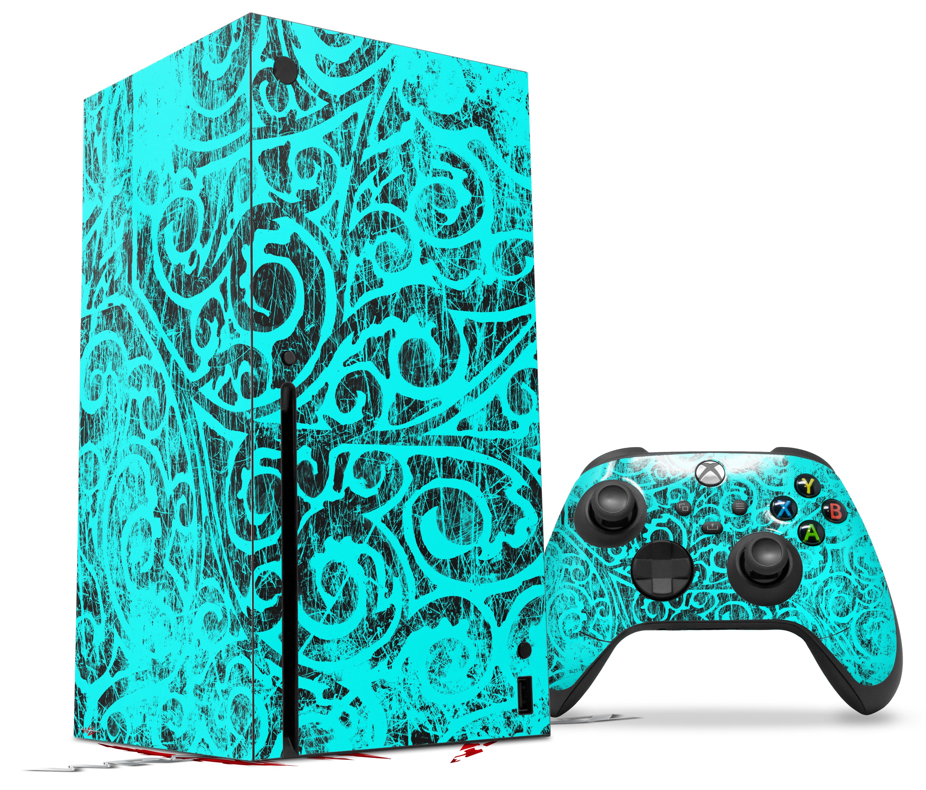 WraptorSkinz Skin Wrap compatible with the 2020 XBOX Series X Console and Controller Folder Doodles Neon Teal (XBOX NOT INCLUDED)