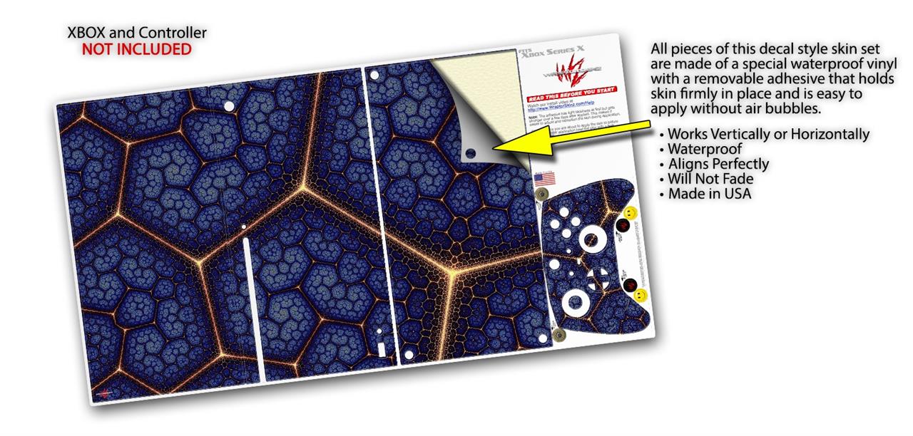 WraptorSkinz® skin wraps for the XBOX Series X gaming console and controller reelase November 2020 are printed using superb photo quality designs and vibrant colors printed with special fade resistant inks that last even in direct sun for years. WraptorSkinz are a composite of two layers of commercial grade materials. The bottom layer is a soft, flexible vinyl with a special removable adhesive that is easily positioned, applied without air bubbles. Next we print the bottom layer with UV protected, fade resistant inks that deliver superb photo quality designs in vibrant colors. Last, we bond a professional grade laminate over the entire skin adding a glossy protective finish. This product is not affiliated with or endorsed by Microsoft or the XBOX brand.