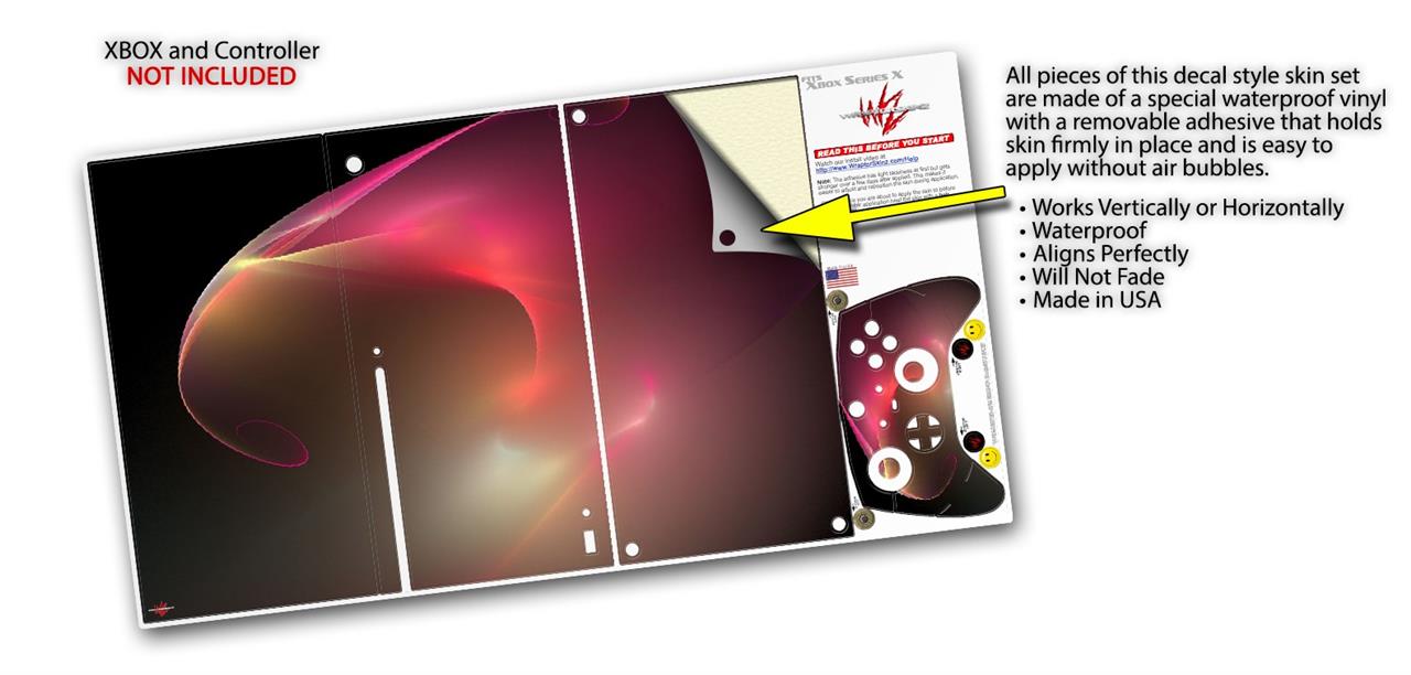 WraptorSkinz® skin wraps for the XBOX Series X gaming console and controller reelase November 2020 are printed using superb photo quality designs and vibrant colors printed with special fade resistant inks that last even in direct sun for years. WraptorSkinz are a composite of two layers of commercial grade materials. The bottom layer is a soft, flexible vinyl with a special removable adhesive that is easily positioned, applied without air bubbles. Next we print the bottom layer with UV protected, fade resistant inks that deliver superb photo quality designs in vibrant colors. Last, we bond a professional grade laminate over the entire skin adding a glossy protective finish. This product is not affiliated with or endorsed by Microsoft or the XBOX brand.