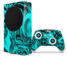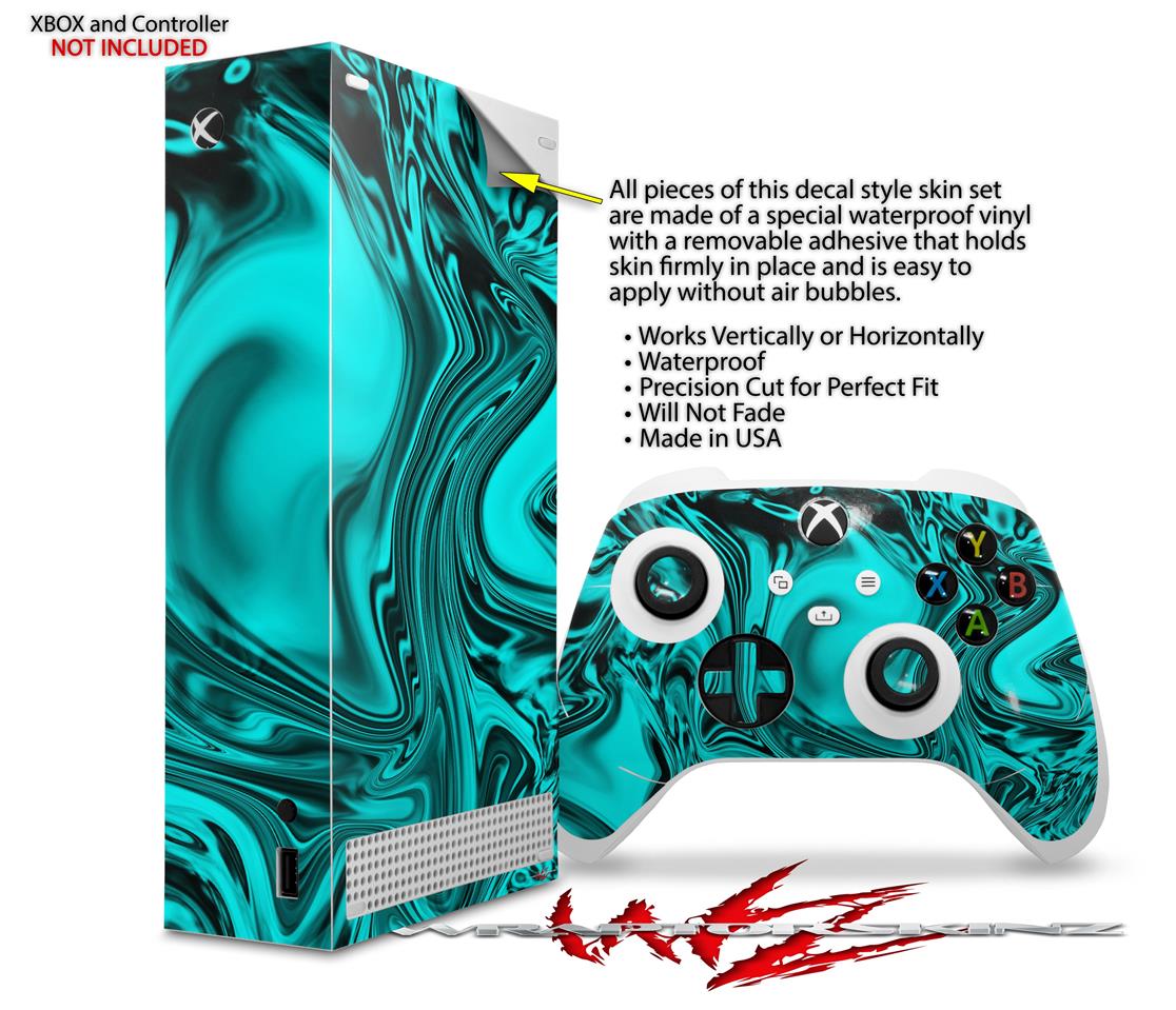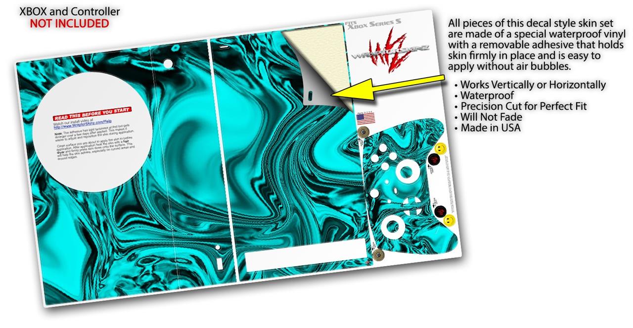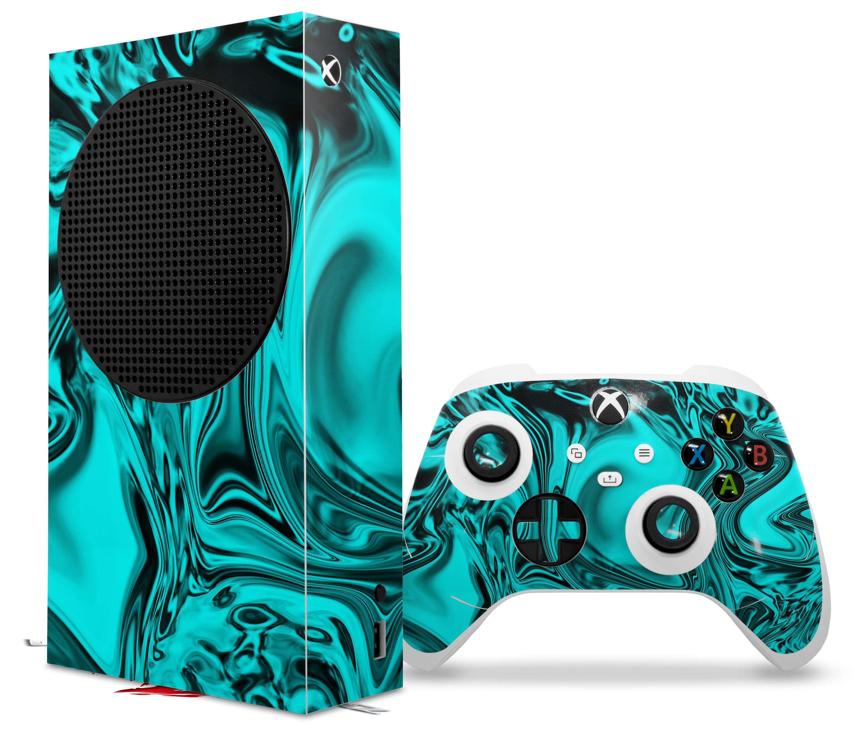 WraptorSkinz Skin Wrap compatible with the 2020 XBOX Series S Console and Controller Liquid Metal Chrome Neon Teal (XBOX NOT INCLUDED)