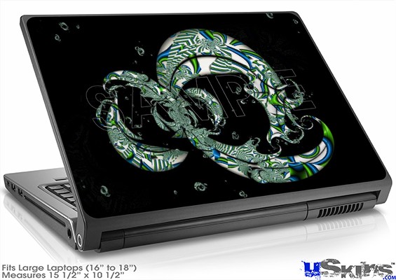 Laptop Skin fits most larger size laptops with 16" to 18" screens. Skin measures 15 1/2" wide x 10 1/2" high. uSkinsTM self adhering vinyl skins will look amazing on your electronic gear, printed at the highest resolution possible for unbeatable color and razor sharp clarity. Unlike bulky silicon, plastic or metal cases and faceplates, uSkins are designed to be thin and very tough. uSkins are a composite of layered commercial grade vinyls. The bottom layer is a soft, flexible vinyl with a special removable adhesive that is easily positioned, applied without air bubbles, and effortlessly removed without leaving a sticky residue. uSkins are printed with the latest in UV protected inks that resist fading for up to 3 years even in direct sunlight. Finally we bond a professional grade laminate over the entire skin adding a professional glossy protective finish.