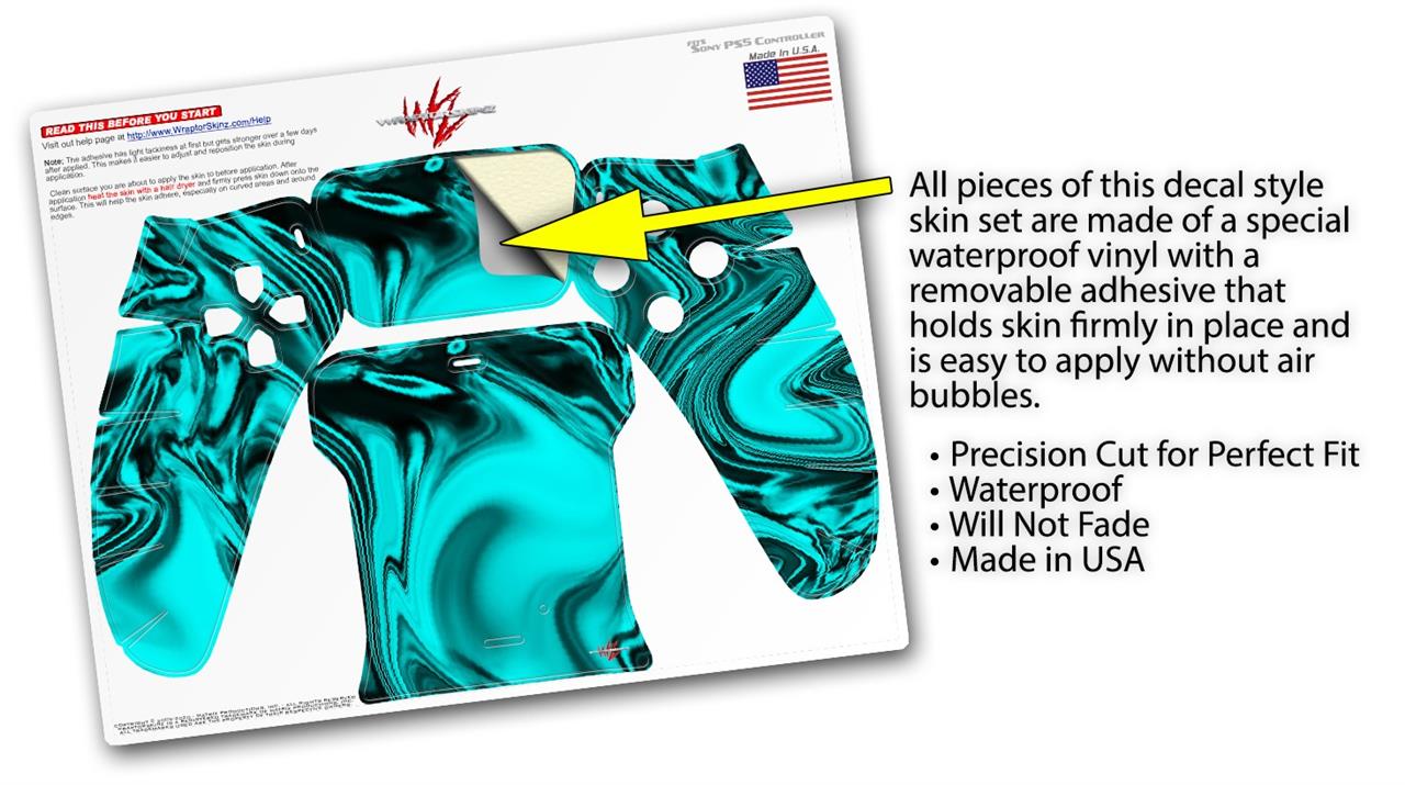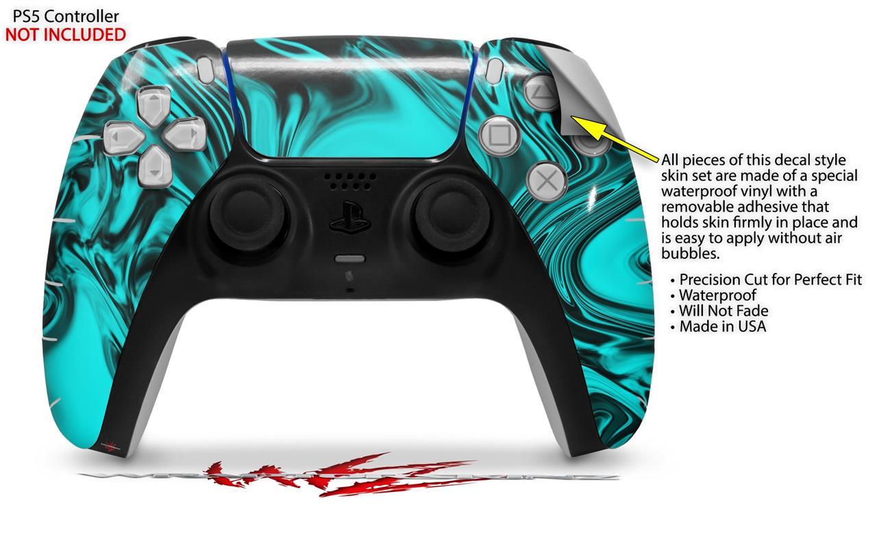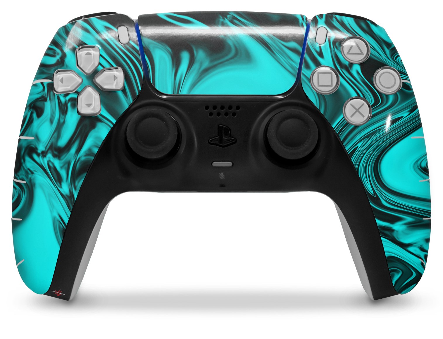 WraptorSkinz Skin Wrap compatible with the Sony PS5 DualSense Controller Liquid Metal Chrome Neon Teal (CONTROLLER NOT INCLUDED)