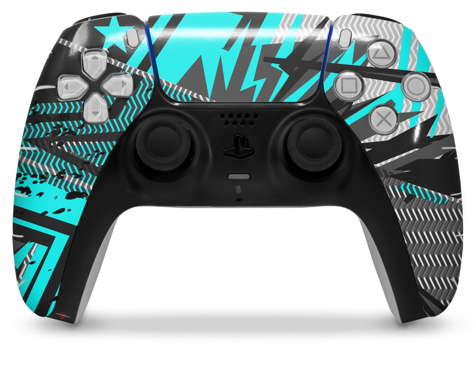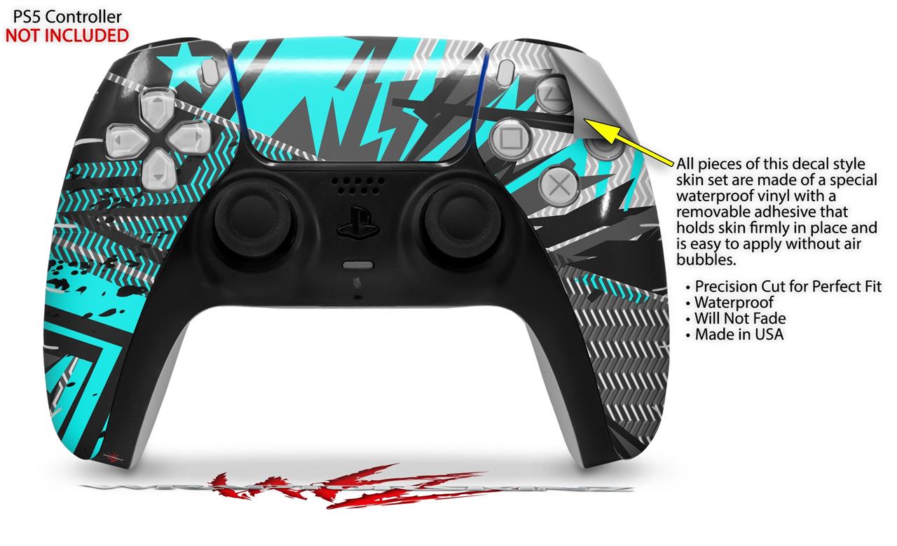 WraptorSkinz Skin Wrap compatible with the Sony PS5 DualSense Controller Baja 0032 Neon Teal (CONTROLLER NOT INCLUDED)