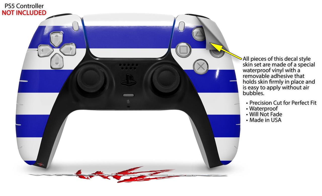 WraptorSkinz Skin Wrap compatible with the Sony PS5 DualSense Controller Psycho Stripes Blue and White (CONTROLLER NOT INCLUDED)