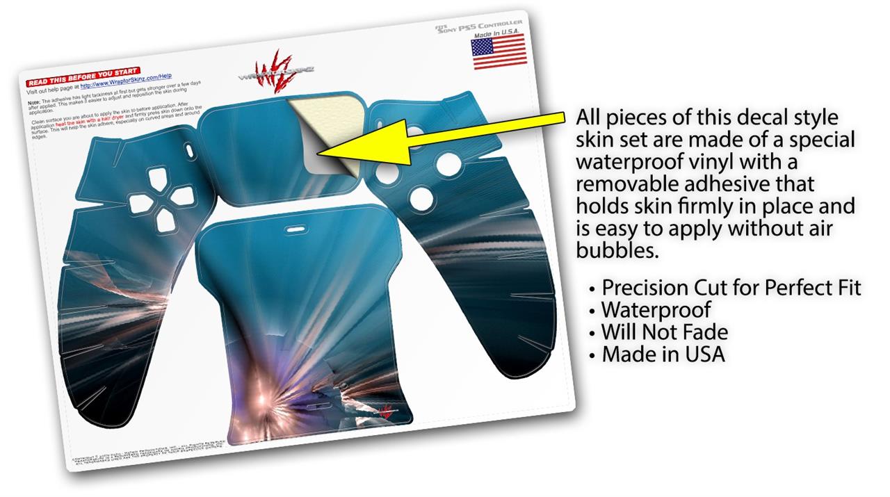 WraptorSkinz® skin wraps for the Sony Playstation 5 controller are printed using superb photo quality designs and vibrant colors printed with special fade resistant inks that last even in direct sun for years. WraptorSkinz are a composite of two layers of commercial grade materials. The bottom layer is a soft, flexible vinyl with a special removable adhesive that is easily positioned, applied without air bubbles. Next we print the bottom layer with UV protected, fade resistant inks that deliver superb photo quality designs in vibrant colors. Last, we bond a professional grade laminate over the entire skin adding a glossy protective finish. This product is not affiliated with or endorsed by Sony or the Playstation brand.