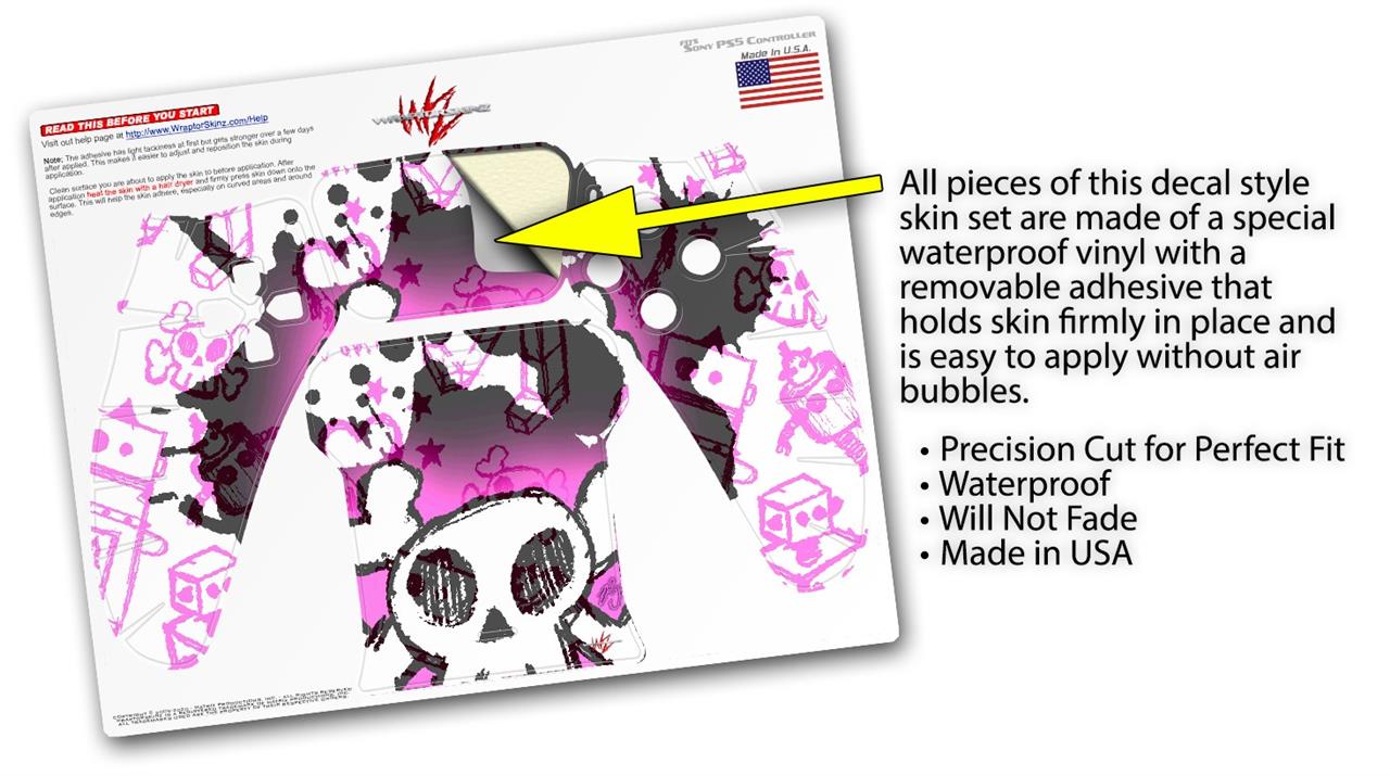 WraptorSkinz Skin Wrap compatible with the Sony PS5 DualSense Controller Cartoon Skull Pink (CONTROLLER NOT INCLUDED)
