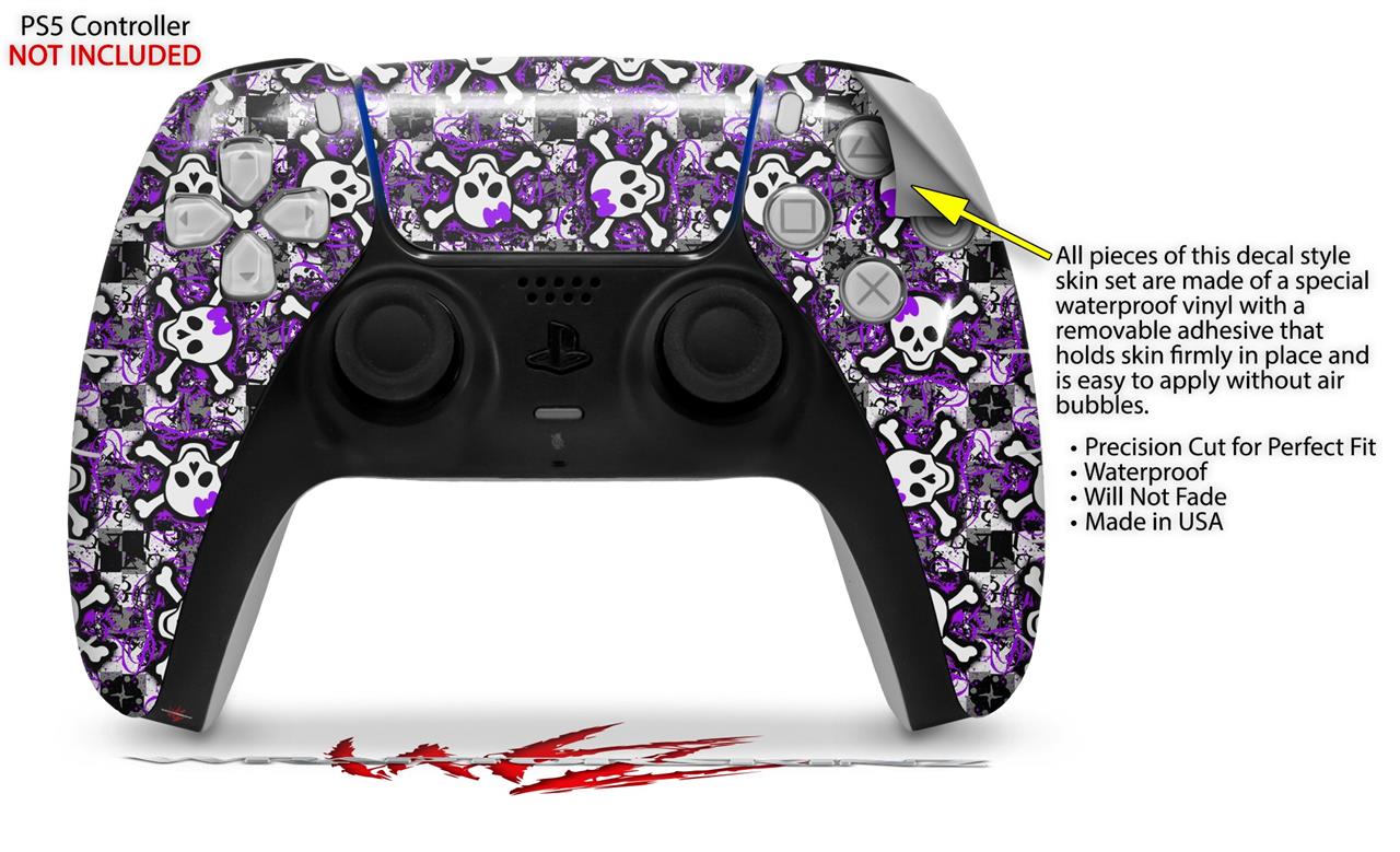 WraptorSkinz Skin Wrap compatible with the Sony PS5 DualSense Controller Splatter Girly Skull Purple (CONTROLLER NOT INCLUDED)