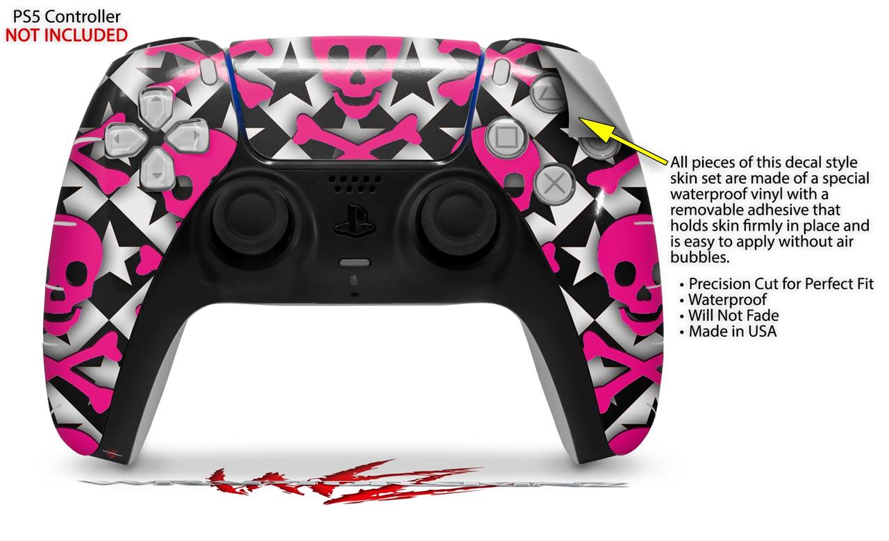 WraptorSkinz Skin Wrap compatible with the Sony PS5 DualSense Controller Pink Skulls and Stars (CONTROLLER NOT INCLUDED)