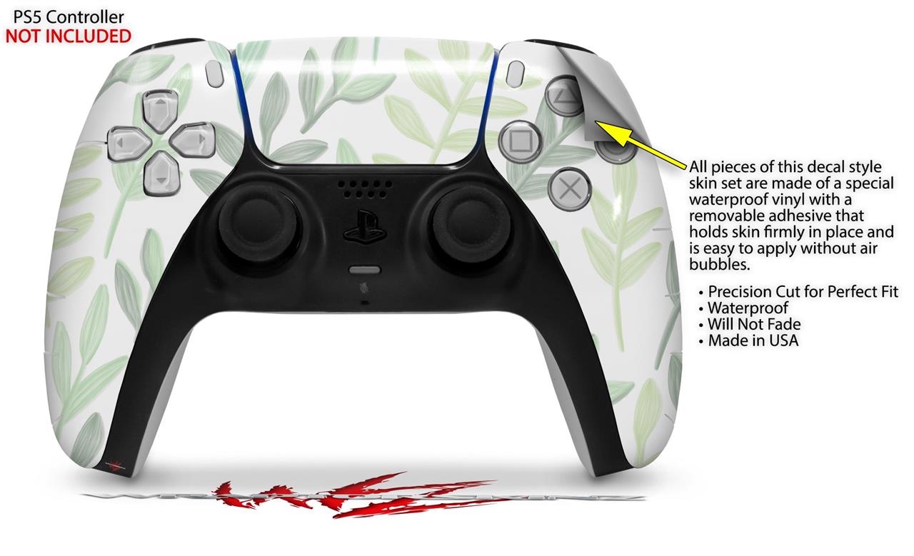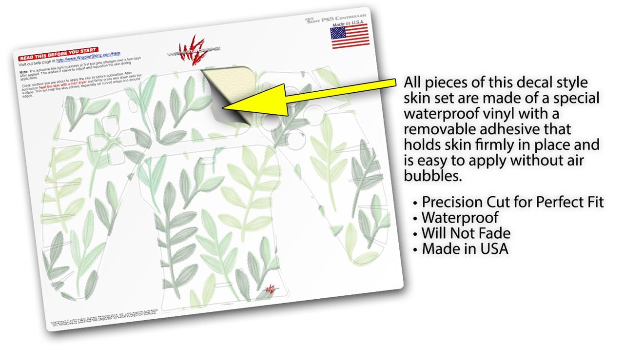 WraptorSkinz Skin Wrap compatible with the Sony PS5 DualSense Controller Watercolor Leaves White (CONTROLLER NOT INCLUDED)