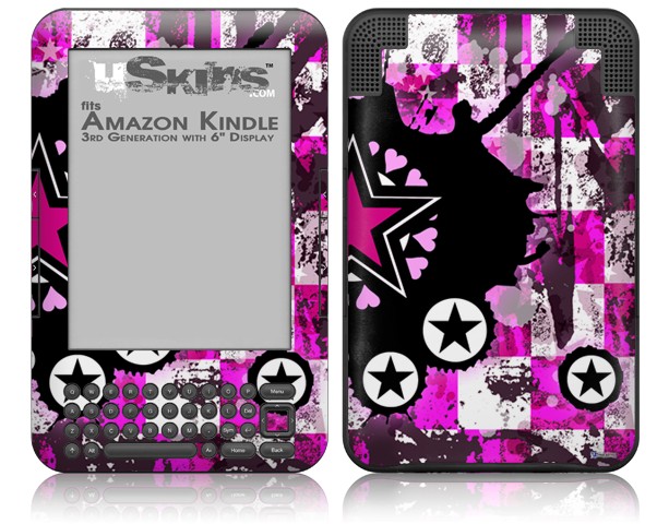 Pink Star Splatter - Decal Style Skin fits Amazon Kindle 3 Keyboard (with 6 inch display)