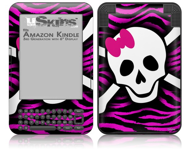 Pink Zebra Skull - Decal Style Skin fits Amazon Kindle 3 Keyboard (with 6 inch display)