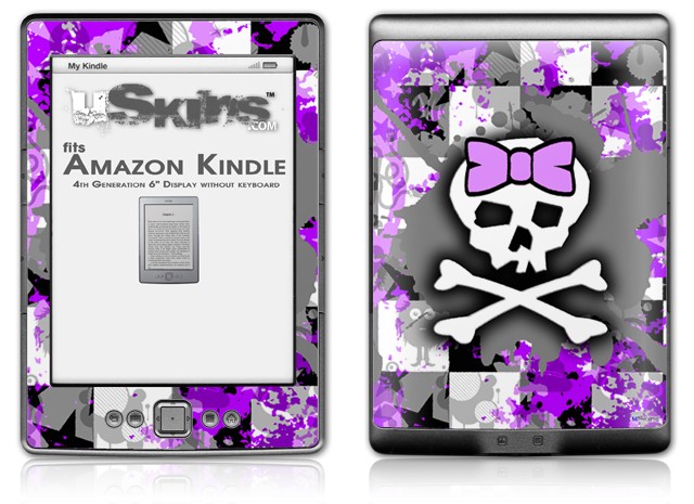 Purple Princess Skull - Decal Style Skin (fits 4th Gen Kindle with 6inch display and no keyboard)