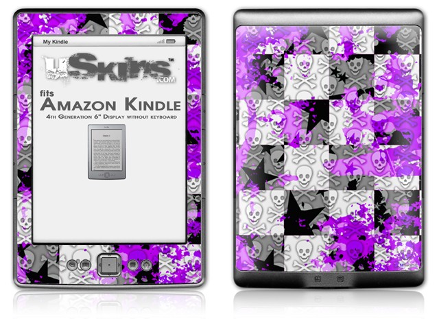Purple Checker Skull Splatter - Decal Style Skin (fits 4th Gen Kindle with 6inch display and no keyboard)