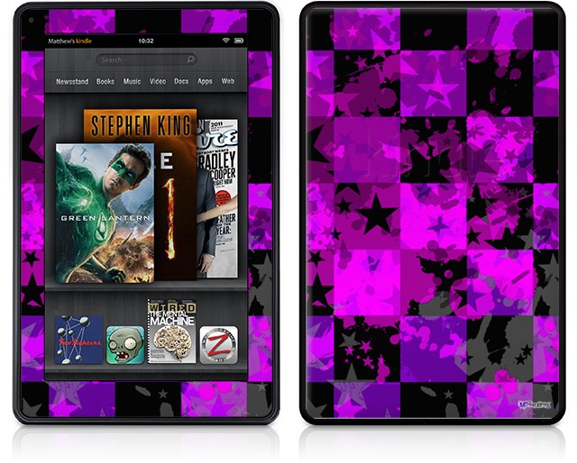 Amazon Kindle Fire (Original) Decal Style Skin - Purple Star Checkerboard