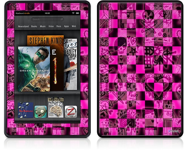 Amazon Kindle Fire (Original) Decal Style Skin - Pink Checkerboard Sketches