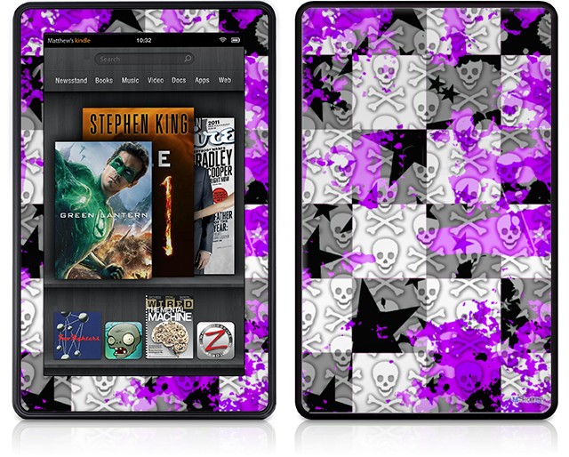 Amazon Kindle Fire (Original) Decal Style Skin - Purple Checker Skull Splatter