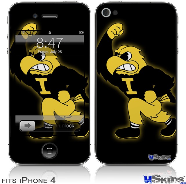 iPhone 4 Decal Style Vinyl Skin - Iowa Hawkeyes Herky on Black (DOES NOT fit newer iPhone 4S)