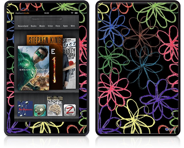 Amazon Kindle Fire (Original) Decal Style Skin - Kearas Flowers on Black