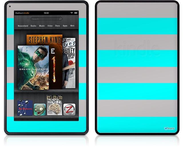 Amazon Kindle Fire (Original) Decal Style Skin - Psycho Stripes Neon Teal and Gray