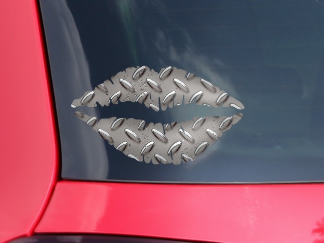 Lips Decal 9x5.5 Diamond Plate Metal 02-2