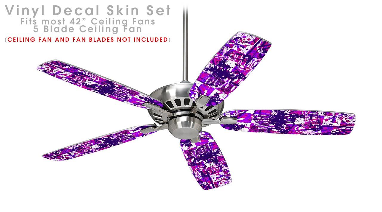 Purple Checker Graffiti - Ceiling Fan Skin Kit fits most 42 inch fans (FAN and BLADES SOLD SEPARATELY)