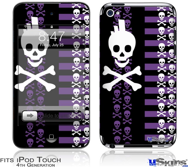 iPod Touch 4G Decal Style Vinyl Skin - Skulls and Stripes 6