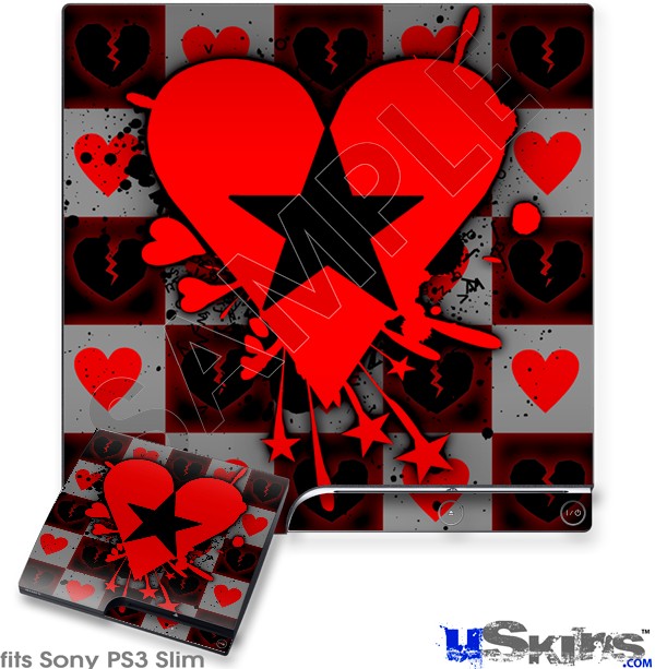 Decal Skin compatible with Sony PS3 Slim Emo Star Heart