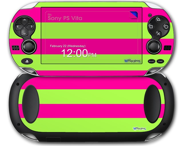 Psycho Stripes Neon Green and Hot Pink - Decal Style Skin fits Sony PS Vita