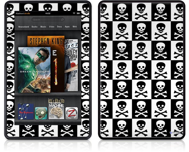Amazon Kindle Fire (Original) Decal Style Skin - Skull Checkerboard