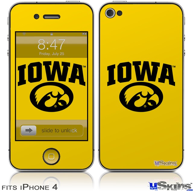 iPhone 4 Decal Style Vinyl Skin - Iowa Hawkeyes Tigerhawk Oval 01 Black on Gold (DOES NOT fit newer iPhone 4S)