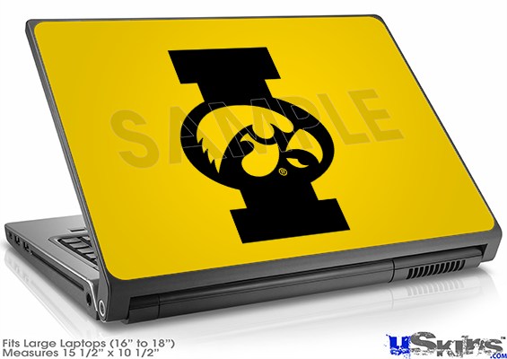 Laptop Skin (Large) - Iowa Hawkeyes Tigerhawk Oval 02 Black on Gold