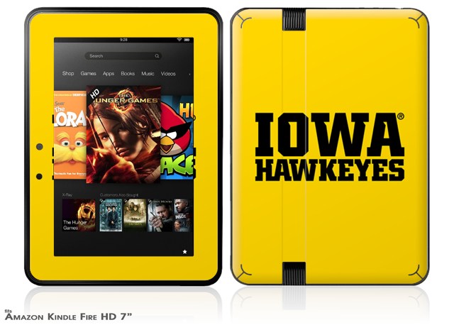 Iowa Hawkeyes 01 Black on Gold Decal Style Skin fits 2012 Amazon Kindle Fire HD 7 inch
