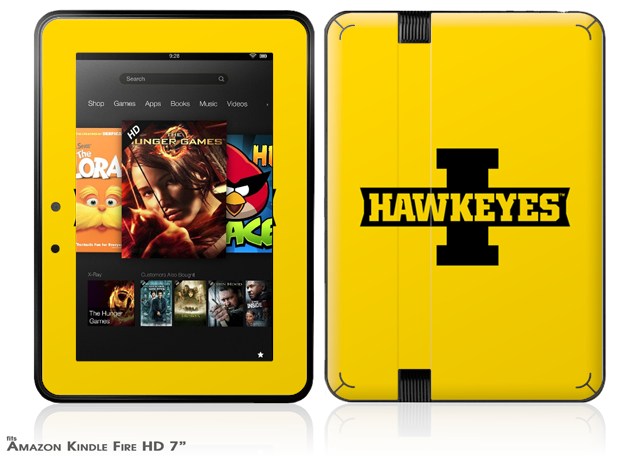 Iowa Hawkeyes 02 Black on Gold Decal Style Skin fits 2012 Amazon Kindle Fire HD 7 inch